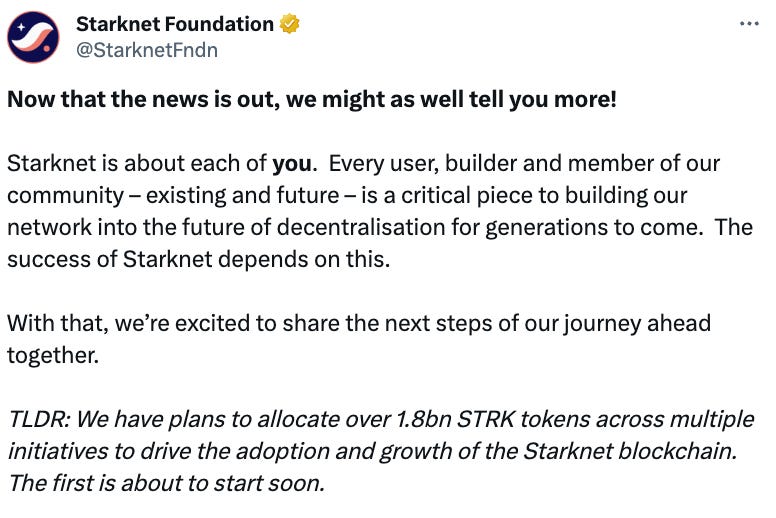 Starknet (🤝) Foundation / STRK Distribution Announcement