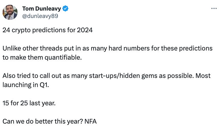 Tom Dunleavy / 24 Crypto Predictions for 2024